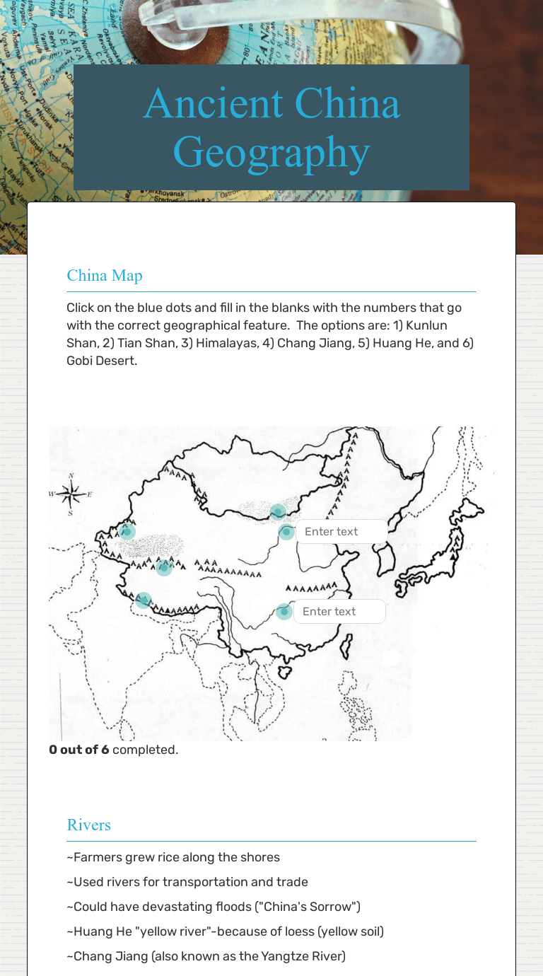 Ancient china's geography shaped how its culture and civilization developed. China's geography webquest · find the answers to the following questions and write the answers on the worksheet. Find ancient china geography lesson plans and teaching resources. This ancient china geography lesson provides an engaging view into china's geography, environment, and how the environment determined . Find worksheets about geography of china.